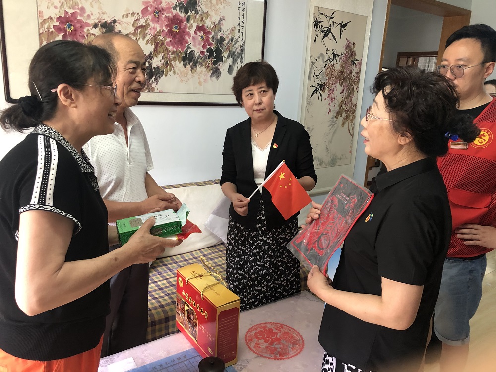 “敬田有谷,敬老有福”,為表達對退休老黨員的關心關愛,旭海大健康產(chǎn)業(yè)發(fā)展集團黨支部、西沽街商會志愿者和水竹社區(qū)工作人員一同慰問水竹社區(qū)5名退休黨員。在老黨員張利祥家中,李淑華書記促膝談心、噓寒問暖,詳細詢問他們的身體和生活情況, 為他們送上旭海大健康準備的防暑慰問品和員工制作的紅色刻畫作品,鼓勵他繼續(xù)保持經(jīng)久不變的共產(chǎn)黨人本色。