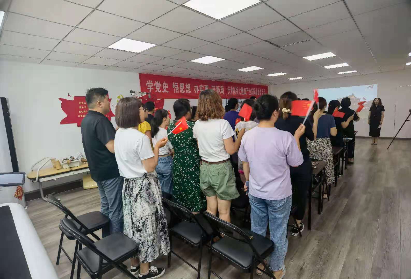 7月1日,天津旭海大健康產(chǎn)業(yè)發(fā)展集團(tuán)黨支部組織全體黨員及員工集中觀看了慶祝中國共產(chǎn)黨成立100周年大會實況。