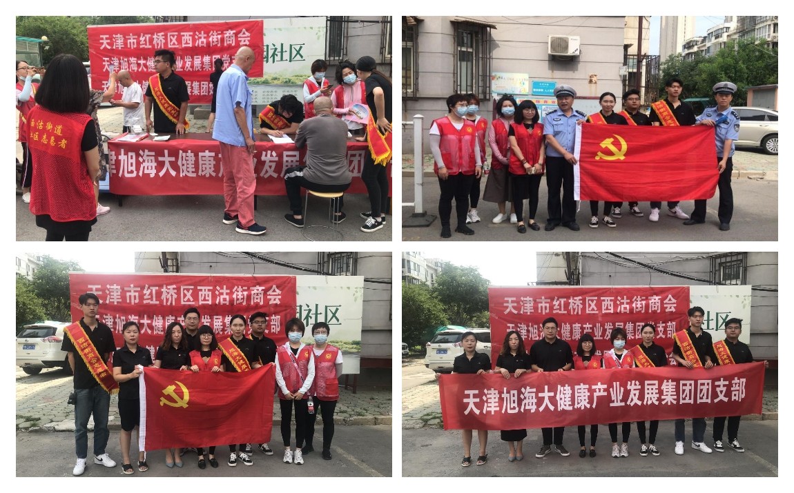 同日,天津旭海大健康產(chǎn)業(yè)發(fā)展集團(tuán)有限公司黨支部黨員、積極分子、入黨申請人、共青團(tuán)員及業(yè)務(wù)骨干代表旭海大健康全體員工,聯(lián)合水竹花園社區(qū)的工作人員,組成志愿服務(wù)隊,在水竹花園小區(qū)組織開展了慶“ 七 一 ”送健康志愿服務(wù)活動,為社區(qū)的居民們免費(fèi)測量血壓、贈送健康書籍和用品,協(xié)助社區(qū)建立社區(qū)健康檔案。還為社區(qū)小朋友們送上了旭海大健康職工為獻(xiàn)給黨百年華誕親手刻制的具有特殊意義的手刻畫,傳承紅色精神。