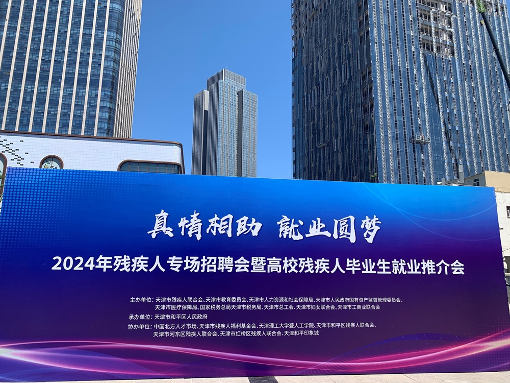2024年5月15日,主題為“真情相助,就業(yè)圓夢”的天津市殘疾人專場招聘會暨高校殘疾人畢業(yè)生就業(yè)推介會在和平區(qū)印象城廣場火熱舉行。這次活動的主辦單位有:天津市殘疾人聯(lián)合會、天津市和平區(qū)人民政府、天津市教育委員會、天津市人力資源和社會保障局、天津市人民政府國有資產(chǎn)監(jiān)督管理委員會、天津市醫(yī)療保障局、國家稅務(wù)總局天津市稅務(wù)局、天津市總工會、天津市婦女聯(lián)合會、天津市工商業(yè)聯(lián)合會,承辦單位有:天津市殘疾人社會保障和就業(yè)服務(wù)中心、中國北方人才市場、天津市和平區(qū)殘疾人聯(lián)合會、天津市河?xùn)|區(qū)殘疾人聯(lián)合會、天津市紅橋區(qū)殘疾人聯(lián)合會、天津理工大學(xué)聾人工學(xué)院,此次招聘會由多家單位聯(lián)合舉辦,一年一度,160多家企業(yè)參加此次招聘會,還有線上的“直播帶崗”,線上線下相結(jié)合,規(guī)模盛大。