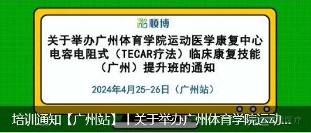 培訓通知【廣州站】丨關于舉辦廣州體育學院運動醫(yī)學康復中心 電容電阻式(TECAR療法)臨床康復技能 (廣州)提升班的通知